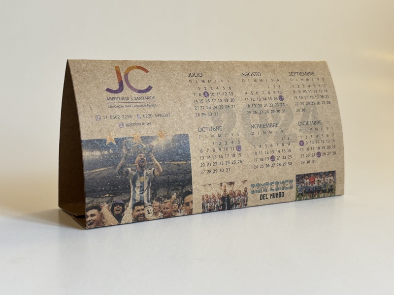 50 Almanaques Calendario Carpa en Kraft 405gr Personalizado Color 20x10cm Año 2026
